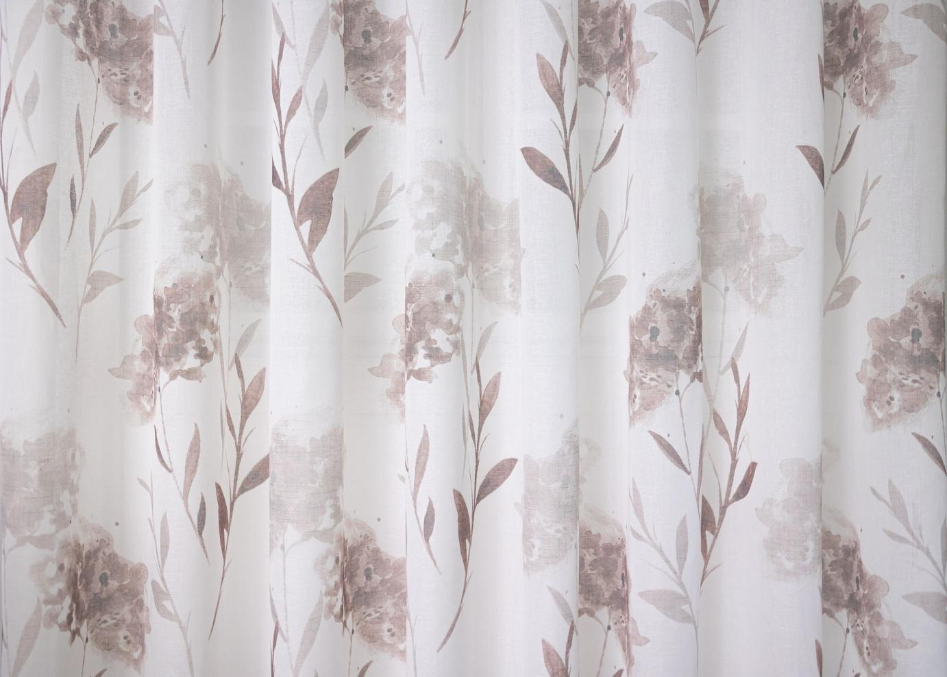 Pasztell színű, természetes hatású, nagy virágokkal díszített sablé jellegű függöny különlegesség. Teljesen vasalásmentes, háromféle színben megtalálható webáruházunkban.