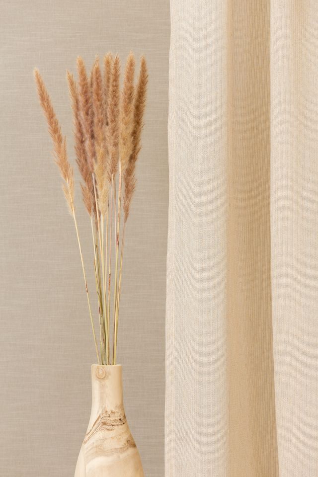 Drapp színű, minta nélküli, vasalásmentes fényáteresztő függöny.