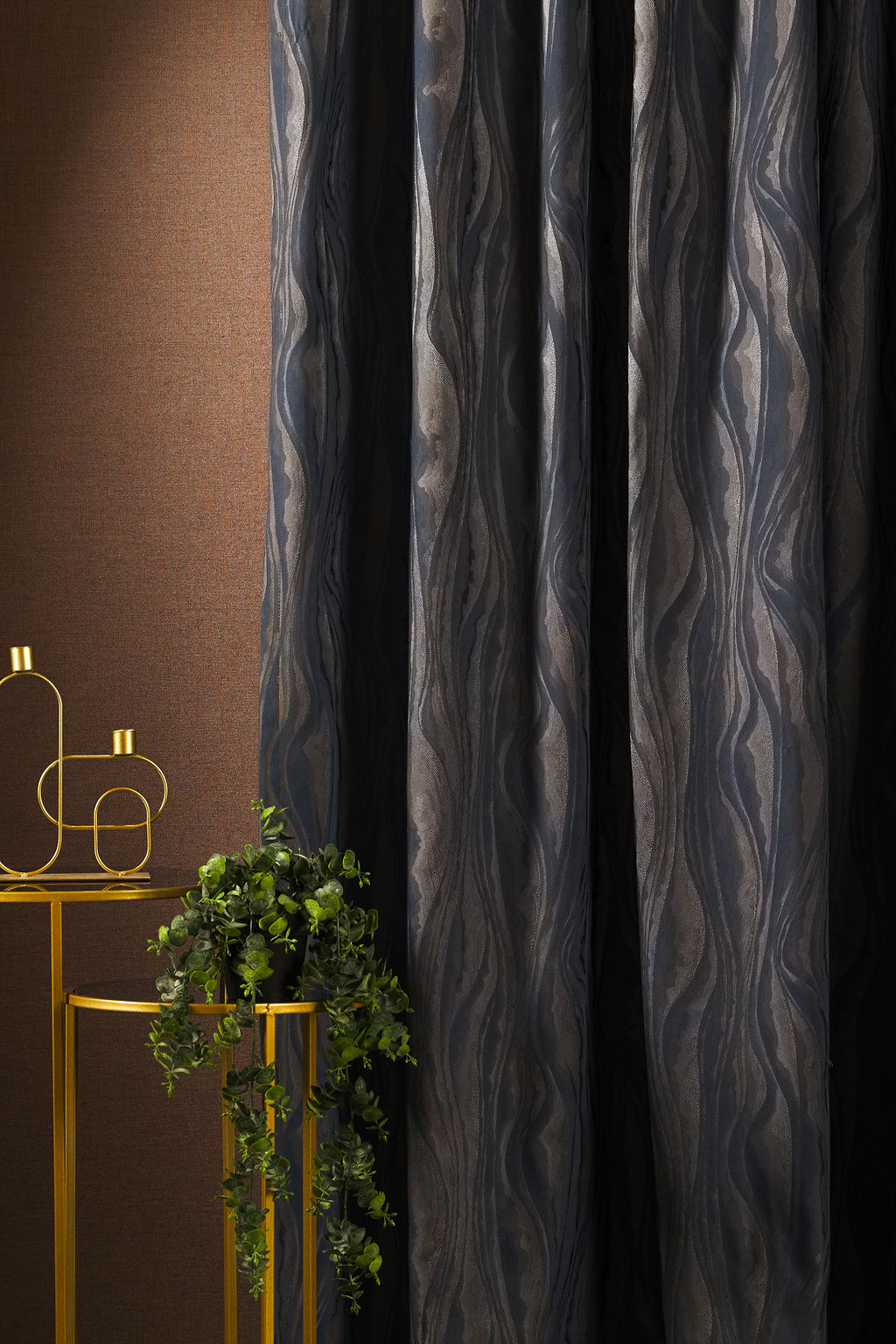Hullámmintával díszített dekorfüggöny-család.
