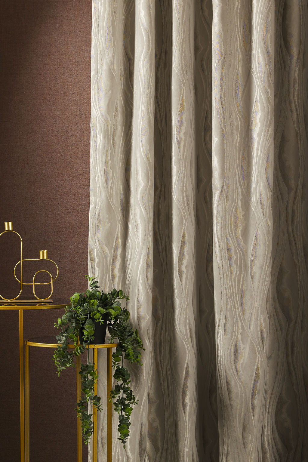 Hullámmintával díszített dekorfüggöny-család.