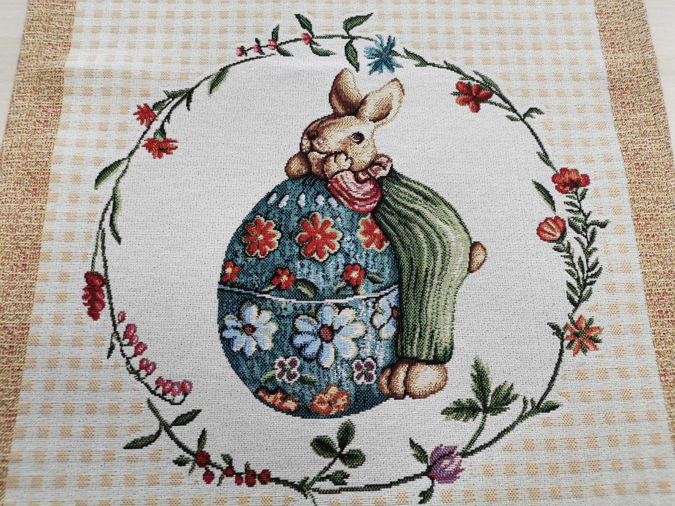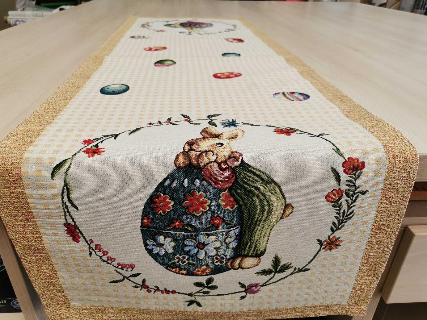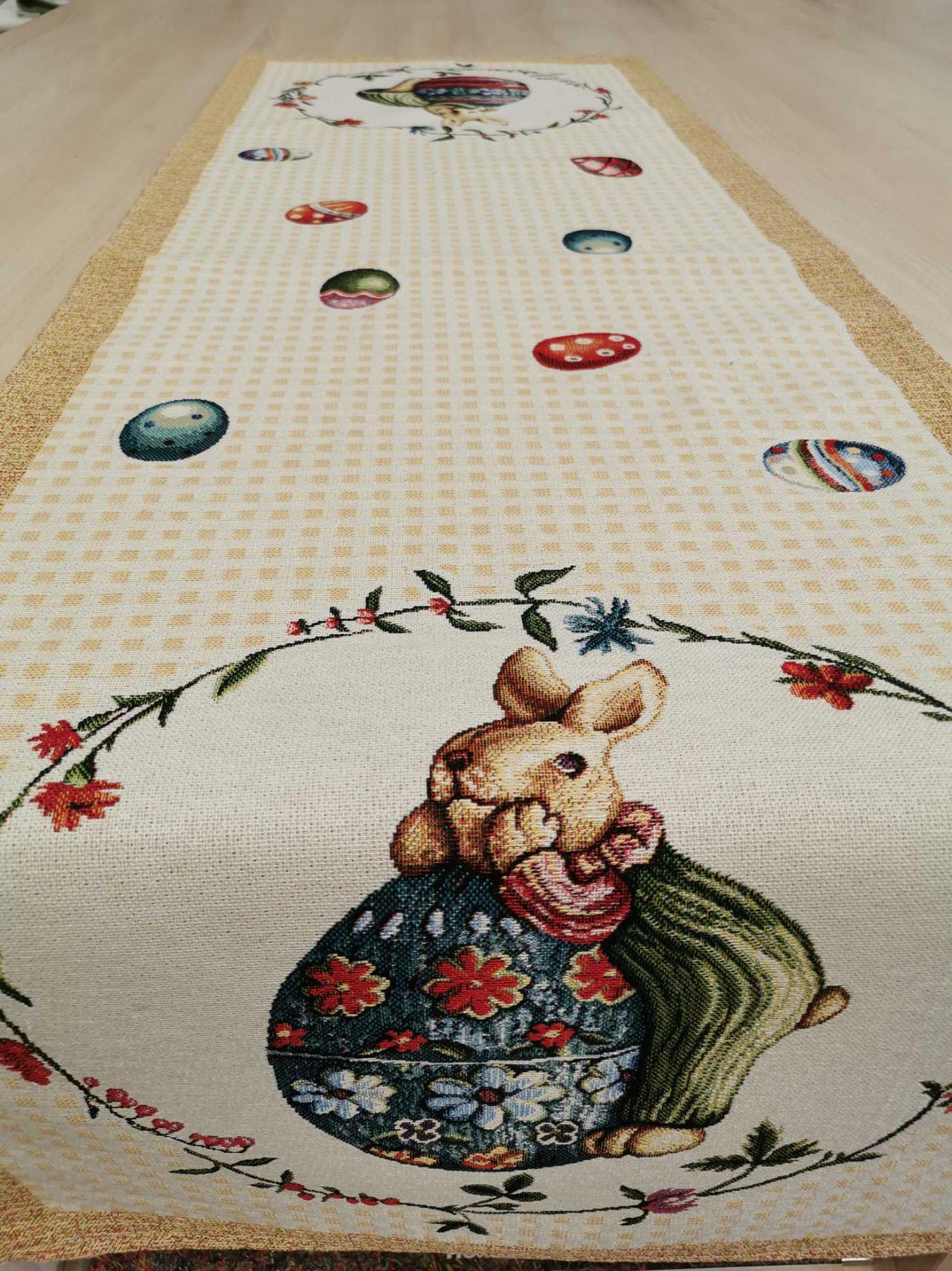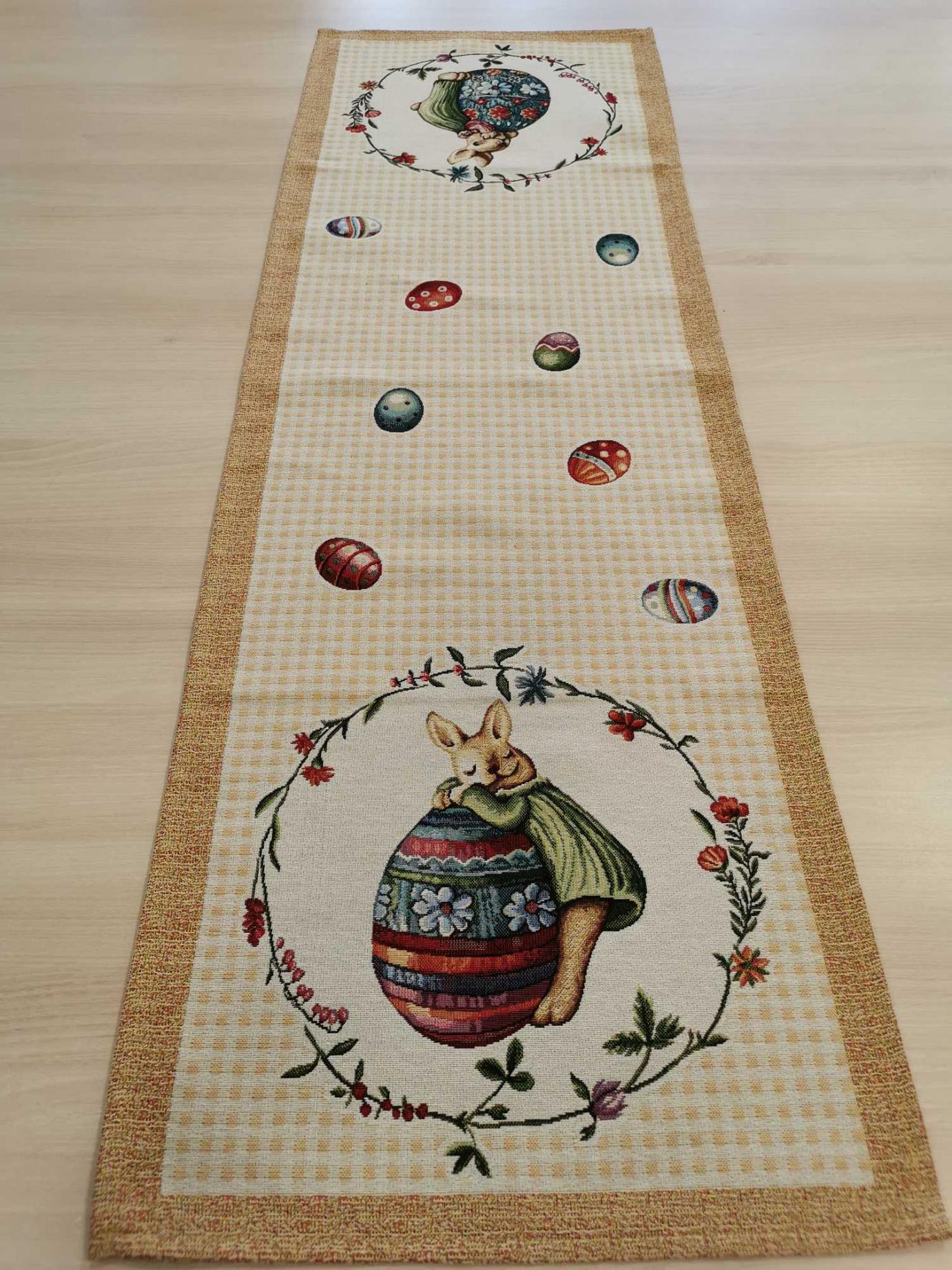 Ez a 45 x1040 cm-es asztali futó garantáltan húsvéti hangulatot varázsol otthonába. Vastag goblein jellegűanyag.