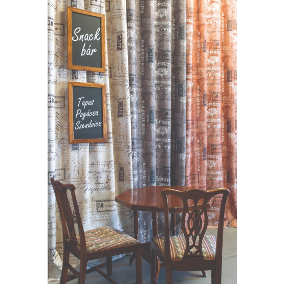 Bézs színű kávé mintás dim out dekor függöny. Fiatalos, trendi kiváló fényzáró é hőszigetelő tulajdonságú.
