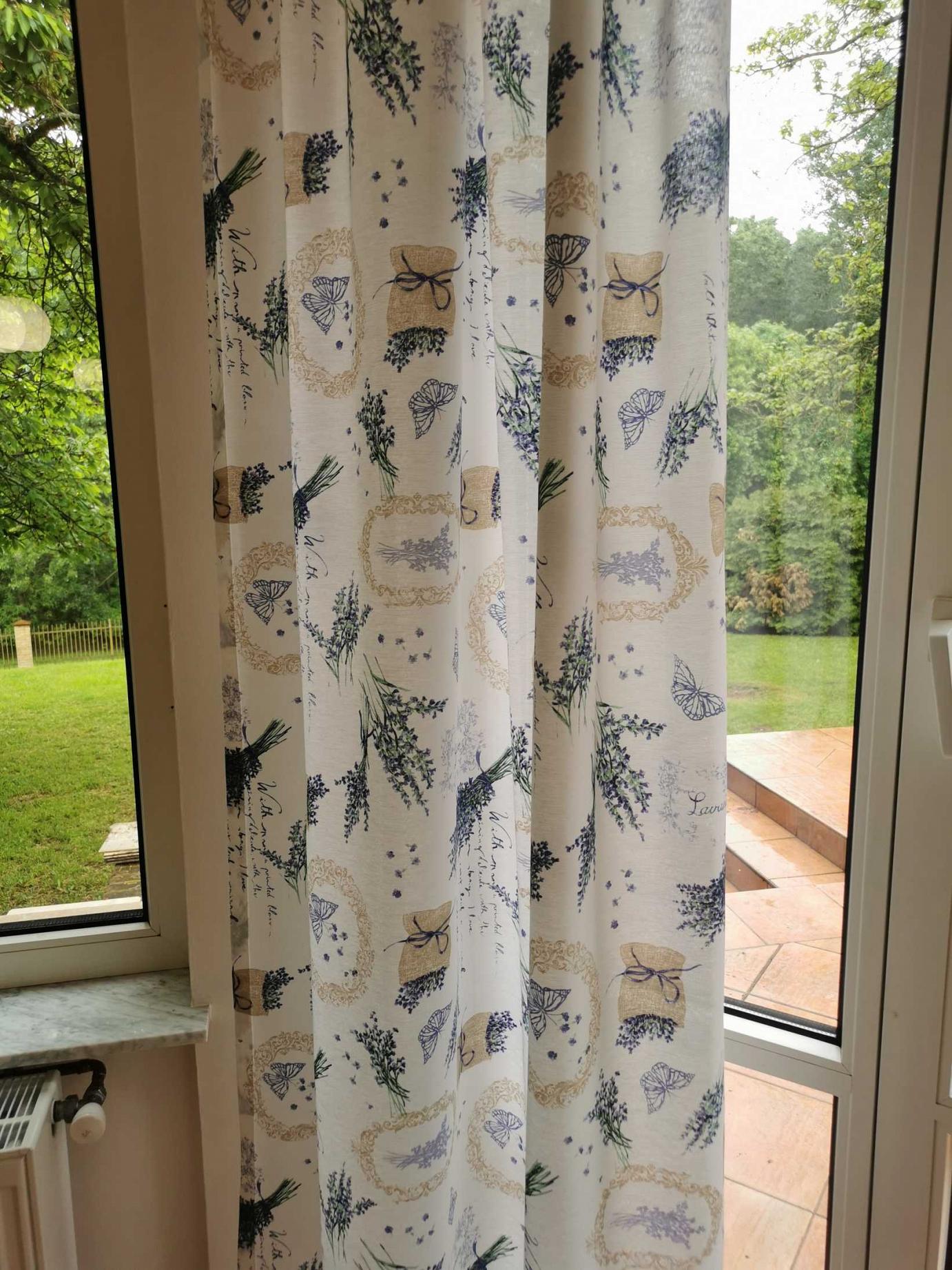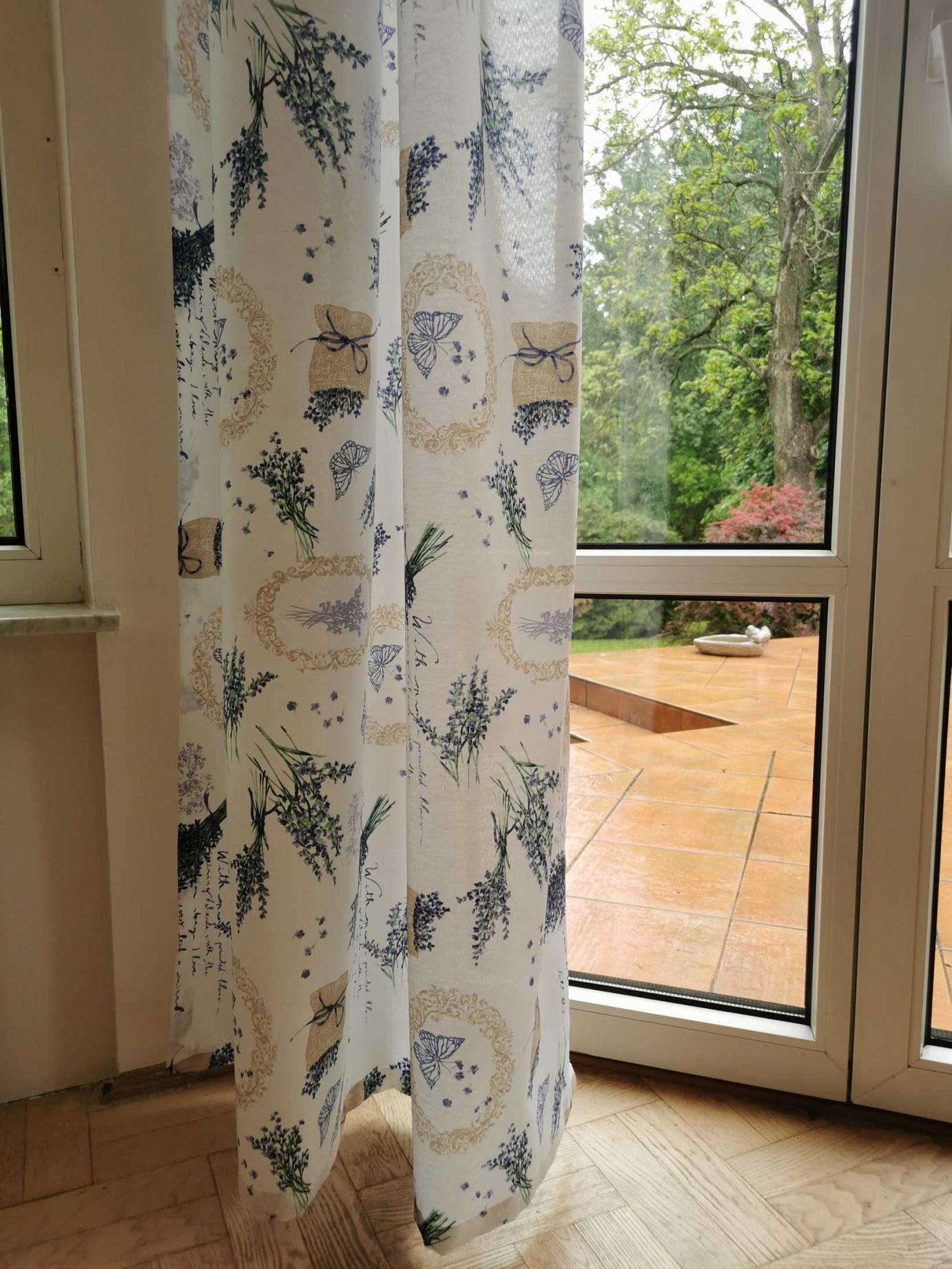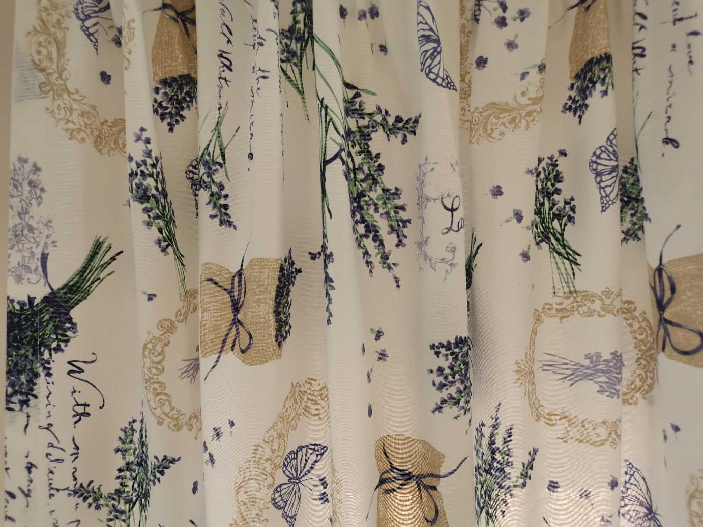 Gyönyörű levendulákkal díszített vintage hangulatú dekorfüggöny anyag, melyből egyéb kiegészítők is készíthetők. Díszpárna, asztalterítő, ágytakaró, székpárna, mindennek csak a képzelet szab határt.