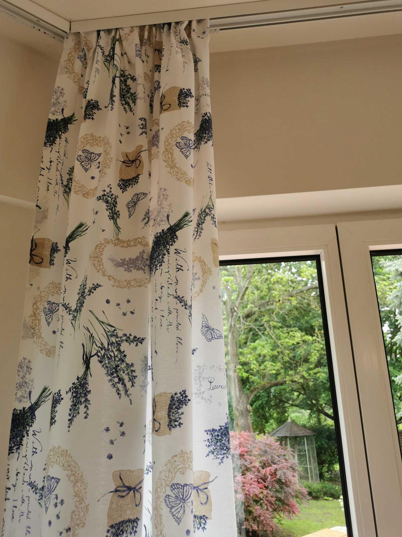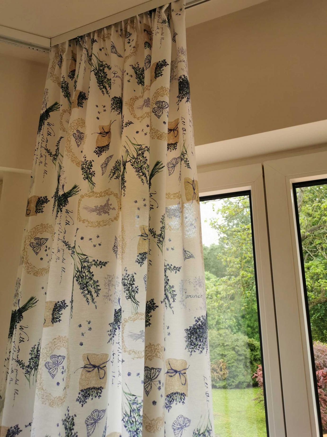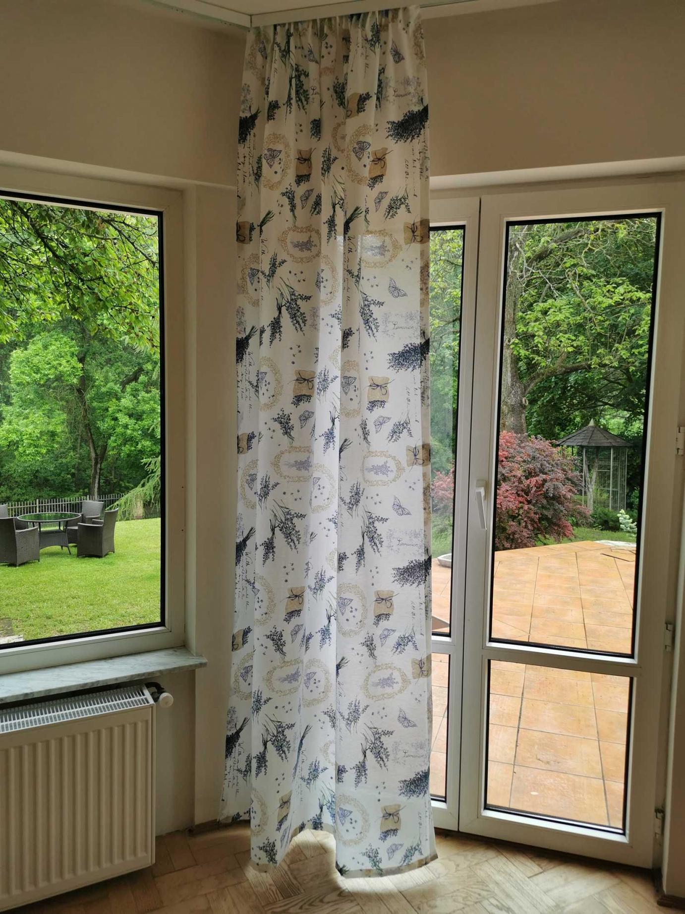 Gyönyörű levendulákkal díszített vintage hangulatú dekorfüggöny anyag, melyből egyéb kiegészítők is készíthetők. Díszpárna, asztalterítő, ágytakaró, székpárna, mindennek csak a képzelet szab határt.