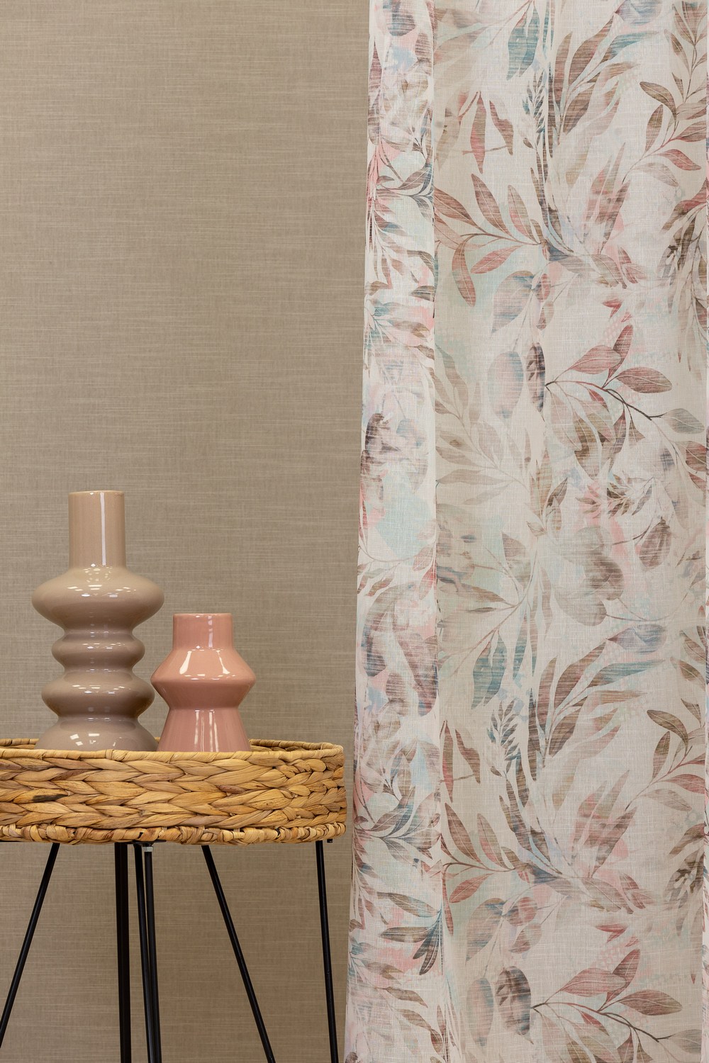 Színes levelekkell díszített sablé alapú fényáteresztő függöny.