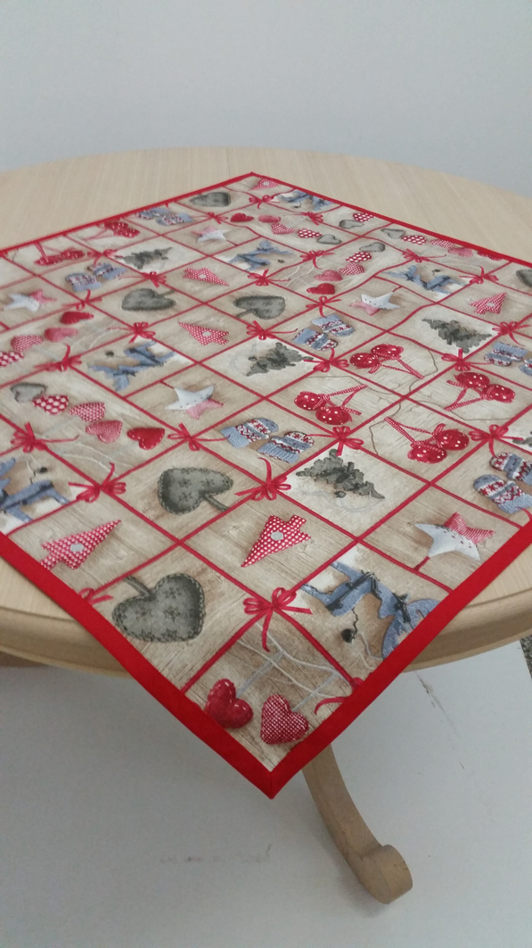 Szívecskés-Kesztyűs karácsonyi asztalközép