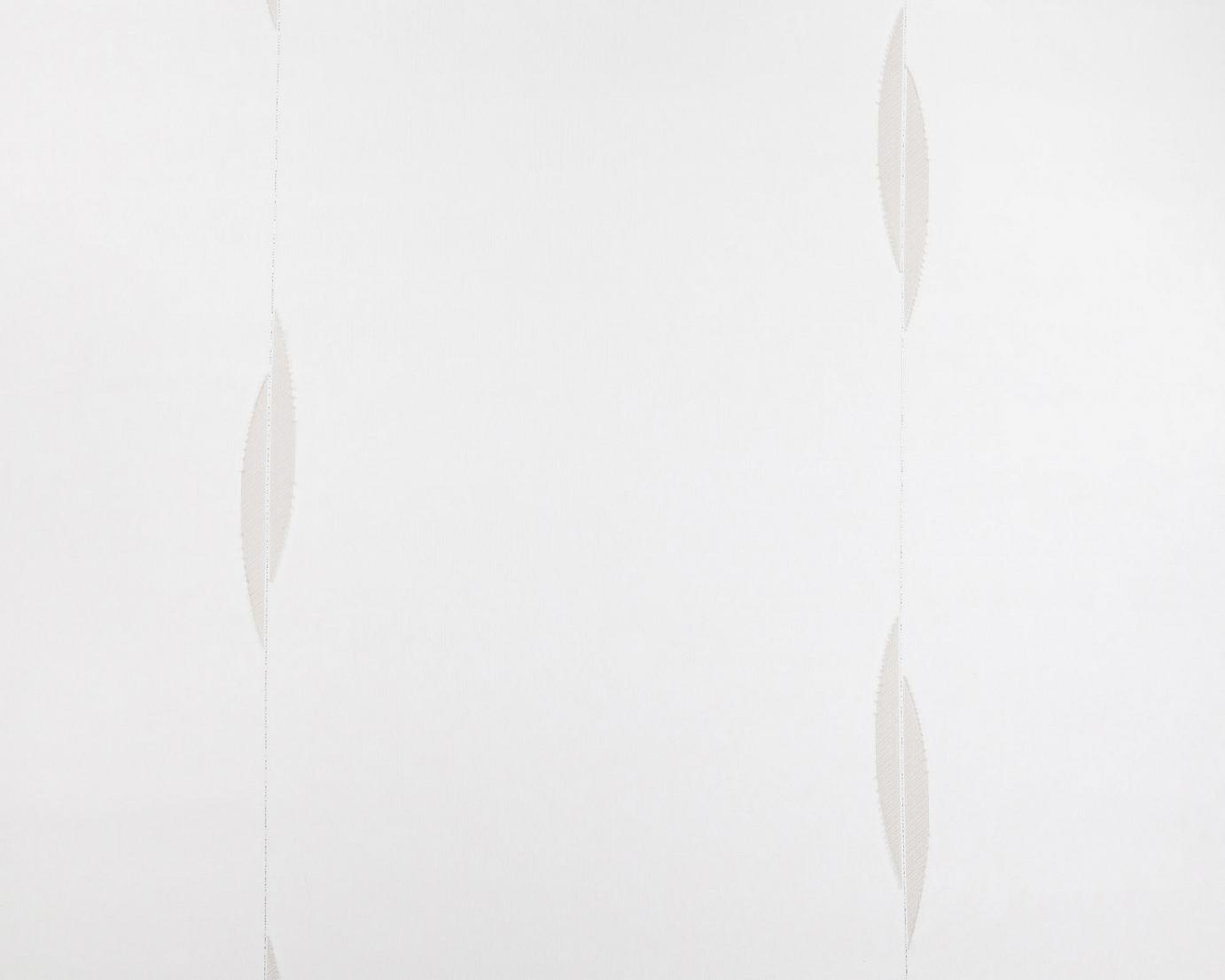 Különleges, törtfehér, sablé jellegű alapra hímzett levelekkel díszített fényáteresztő. Ez a mintasor függőlegesen a függöny teljes hosszában végigfut. Valamint a mintasor közepén még egy ezüst szál is díszíti a mintát.