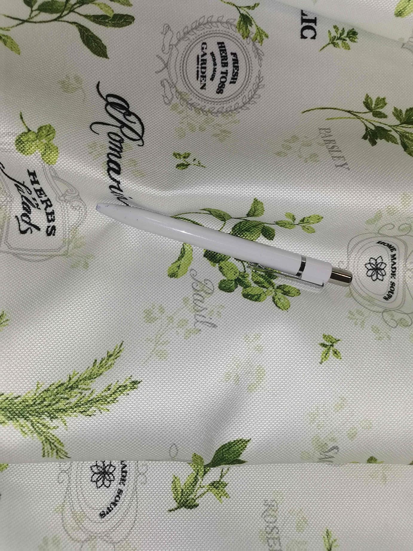 Gyönyörű zöld fűszernövényekkel díszített pamutvászon asztalterítő, mellyel vidámságot varázsolhat otthonába, kertjébe.
